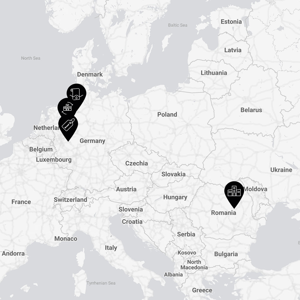 Onze broeken worden in eigen Europese productie gemaakt. Dat garandeert de naleving van moderne sociale en ecologische standaarden en waarborgt de hoogste kwaliteit dankzij regelmatig uitgevoerde tussentijdse controles na elke afzonderlijke productiestap. Sinds de jaren 90 bevindt onze productielocatie zich in de Roemeense stad Târgu Secuiesc in Siebenbürgen, een plek met een eeuwenoude handwerktraditie. Uitstekende machines van de merken UKI, Pfaff en Dürkopp Adler zorgen voor de beste kwaliteit door de perfecte naden. Bovendien worden veel productiestappen met de hand uitgevoerd – geïnspireerd op de kunst van maatwerk. De eersteklas afgewerkte ronde band, het stoppen van de zakken en de siernaden op de achterzakken zijn daar voorbeelden van. Op eenzelfde manier worden de lussen voor de riem en de knopen met steel met de hand aangebracht.